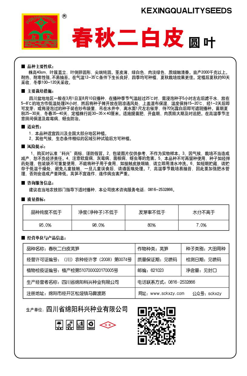 1、购买时认准“科兴”商标,谨防假冒。2、包装图片仅供参考,不作为实物样本。3.因气候、栽培不当造成减产,想不负经济责任。4.注意软腐病、灰需病、菌核病、蚜虫等的危害。5、本品种不可再留种使用、种子如经拌药处理,包装袋不可重复使用,不能将种子用于食用.如接触皮肤眼睛,请立即用清水冲洗。6,如短期贮藏,请贮存于低温干燥处,避免儿童接.一旦儿童误食后.请遵医处理。7、高温季节栽培易抽苔,因此要加强肥水管理,否则会造成产量降低。莴笋不宜连作.连作病虫害严重