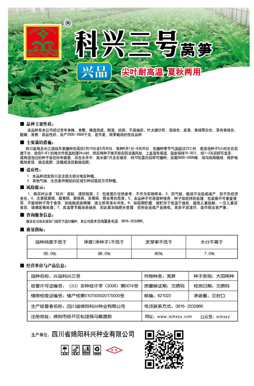 1、购买时认准“科兴”商标,谨防假冒。2、包装图片仅供参考,不作为实物样本。3.因气候、栽培不当造成减产,想不负经济责任。4.注意软腐病、灰需病、菌核病、蚜虫等的危害。5、本品种不可再留种使用、种子如经拌药处理,包装袋不可重复使用,不能将种子用于食用。如接触皮肤眼睛,请立即用清水冲洗。6,如短期贮藏,请贮存于低温干燥处,避免儿童接.一旦儿童误食后.请遵医处理。7、高温季节栽培易抽苔,因此要加强肥水管理,否则会造成产量降低。莴笋不宜连作.连作病虫害严重