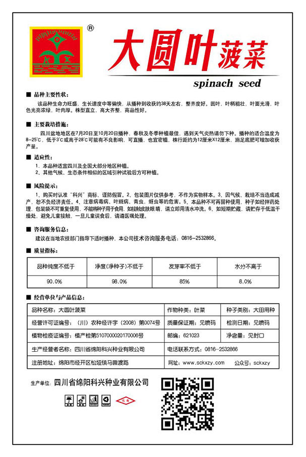1、购买时认准“科兴”商标,谨防假冒。2、包装图片仅供参考,不作为实物样本。3.因气候、栽培不当造成减产,想不负经济责任。4.注意软腐病、灰需病、菌核病、蚜虫等的危害。5、本品种不可再留种使用、种子如经拌药处理,包装袋不可重复使用,不能将种子用于食用。如接触皮肤眼睛,请立即用清水冲洗。6,如短期贮藏,请贮存于低温干燥处,避免儿童接.一旦儿童误食后.请遵医处理。7、高温季节栽培易抽苔,因此要加强肥水管理,否则会造成产量降低。