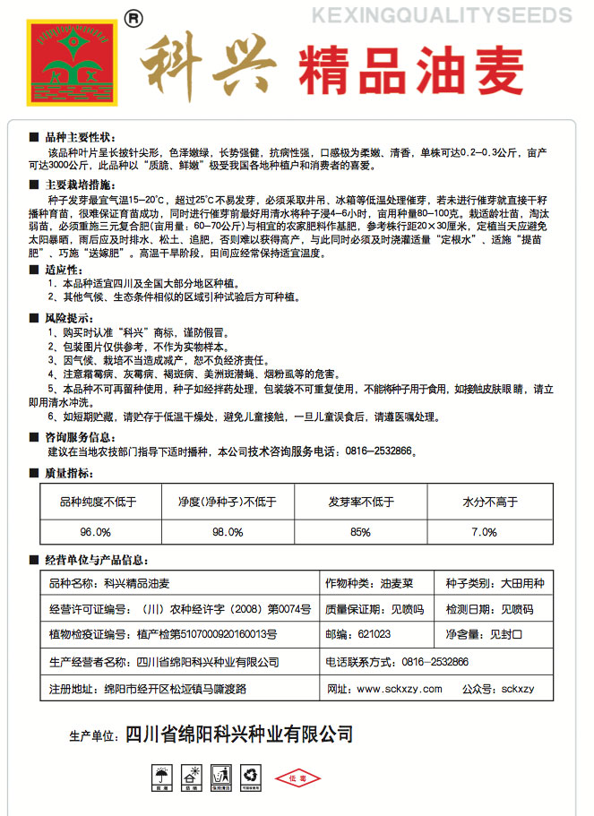 1、购买时认准“科兴”商标,谨防假冒。2、包装图片仅供参考,不作为实物样本。3.因气候、栽培不当造成减产,想不负经济责任。4.注意软腐病、灰需病、菌核病、蚜虫等的危害。5、本品种不可再留种使用、种子如经拌药处理,包装袋不可重复使用,不能将种子用于食用。如接触皮肤眼睛,请立即用清水冲洗。6,如短期贮藏,请贮存于低温干燥处,避免儿童接.一旦儿童误食后.请遵医处理。7、高温季节栽培易抽苔,因此要加强肥水管理,否则会造成产量降低。