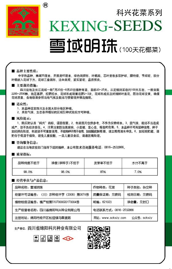 1、购买时认准“科兴”商标,谨防假冒。2、包装图片仅供参考,不作为实物样本。3.因气候、栽培不当造成减产,想不负经济责任。4.注意软腐病、灰需病、菌核病、蚜虫等的危害。5、本品种不可再留种使用、种子如经拌药处理,包装袋不可重复使用,不能将种子用于食用。如接触皮肤眼睛,请立即用清水冲洗。6,如短期贮藏,请贮存于低温干燥处,避免儿童接.一旦儿童误食后.请遵医处理。7、高温季节栽培易抽苔,因此要加强肥水管理,否则会造成产量降低。