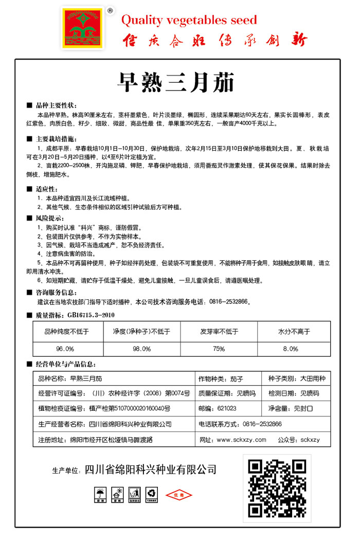 1、购买时认准“科兴”商标,谨防假冒。2、包装图片仅供参考,不作为实物样本。3.因气候、栽培不当造成减产,想不负经济责任。4.注意软腐病、灰需病、菌核病、蚜虫等的危害。5、本品种不可再留种使用、种子如经拌药处理,包装袋不可重复使用,不能将种子用于食用。如接触皮肤眼睛,请立即用清水冲洗。6,如短期贮藏,请贮存于低温干燥处,避免儿童接.一旦儿童误食后.请遵医处理。7、高温季节栽培易抽苔,因此要加强肥水管理,否则会造成产量降低。