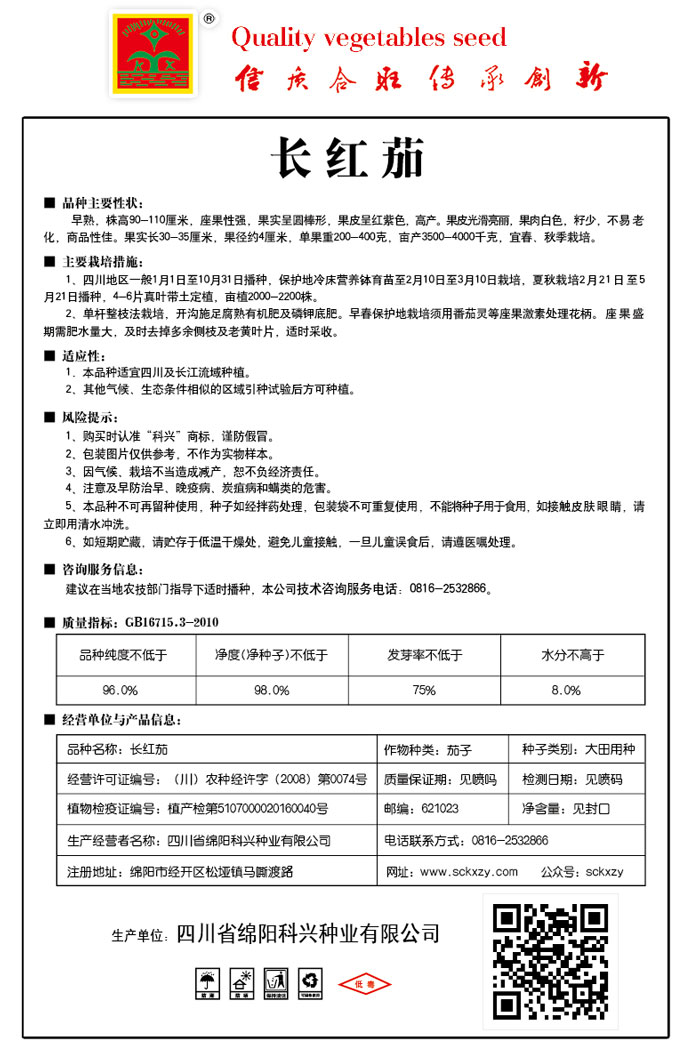 1、购买时认准“科兴”商标,谨防假冒。2、包装图片仅供参考,不作为实物样本。3.因气候、栽培不当造成减产,想不负经济责任。4.注意软腐病、灰需病、菌核病、蚜虫等的危害。5、本品种不可再留种使用、种子如经拌药处理,包装袋不可重复使用,不能将种子用于食用。如接触皮肤眼睛,请立即用清水冲洗。6,如短期贮藏,请贮存于低温干燥处,避免儿童接.一旦儿童误食后.请遵医处理。7、高温季节栽培易抽苔,因此要加强肥水管理,否则会造成产量降低。