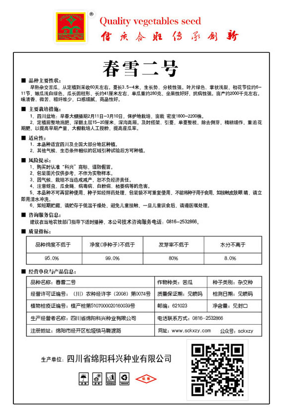 1、购买时认准“科兴”商标,谨防假冒。2、包装图片仅供参考,不作为实物样本。3.因气候、栽培不当造成减产,想不负经济责任。4.注意软腐病、灰需病、菌核病、蚜虫等的危害。5、本品种不可再留种使用、种子如经拌药处理,包装袋不可重复使用,不能将种子用于食用。如接触皮肤眼睛,请立即用清水冲洗。6,如短期贮藏,请贮存于低温干燥处,避免儿童接.一旦儿童误食后.请遵医处理。7、高温季节栽培易抽苔,因此要加强肥水管理,否则会造成产量降低。