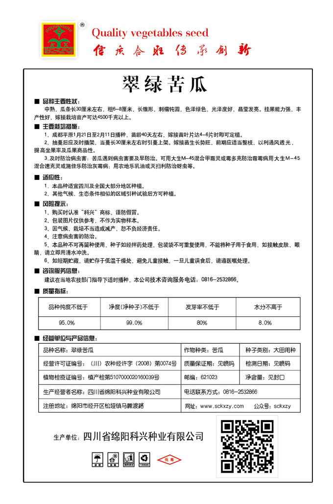 1、购买时认准“科兴”商标,谨防假冒。2、包装图片仅供参考,不作为实物样本。3.因气候、栽培不当造成减产,想不负经济责任。4.注意软腐病、灰需病、菌核病、蚜虫等的危害。5、本品种不可再留种使用、种子如经拌药处理,包装袋不可重复使用,不能将种子用于食用。如接触皮肤眼睛,请立即用清水冲洗。6,如短期贮藏,请贮存于低温干燥处,避免儿童接.一旦儿童误食后.请遵医处理。7、高温季节栽培易抽苔,因此要加强肥水管理,否则会造成产量降低。