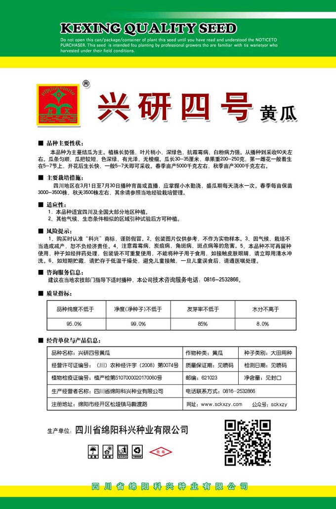 1、购买时认准“科兴”商标,谨防假冒。2、包装图片仅供参考,不作为实物样本。3.因气候、栽培不当造成减产,想不负经济责任。4.注意软腐病、灰需病、菌核病、蚜虫等的危害。5、本品种不可再留种使用、种子如经拌药处理,包装袋不可重复使用,不能将种子用于食用。如接触皮肤眼睛,请立即用清水冲洗。6,如短期贮藏,请贮存于低温干燥处,避免儿童接.一旦儿童误食后.请遵医处理。7、高温季节栽培易抽苔,因此要加强肥水管理,否则会造成产量降低。